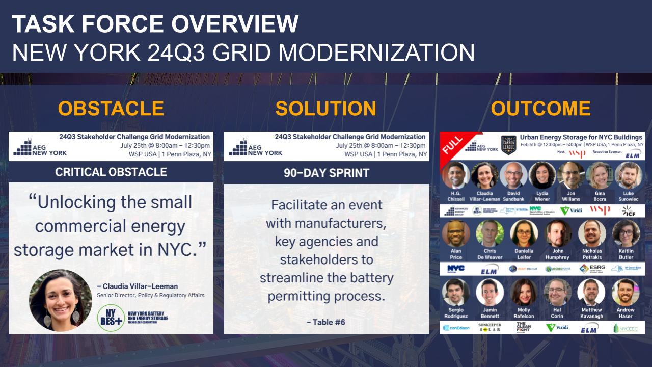 Original Critical Obstacle and first 90-day sprint, formed at the July 27th AEG NY 24Q3 Stakeholder Challenge on Grid modernization. The February 5th Roundtable marks the completion of the Task Force’s first 90-day sprint.