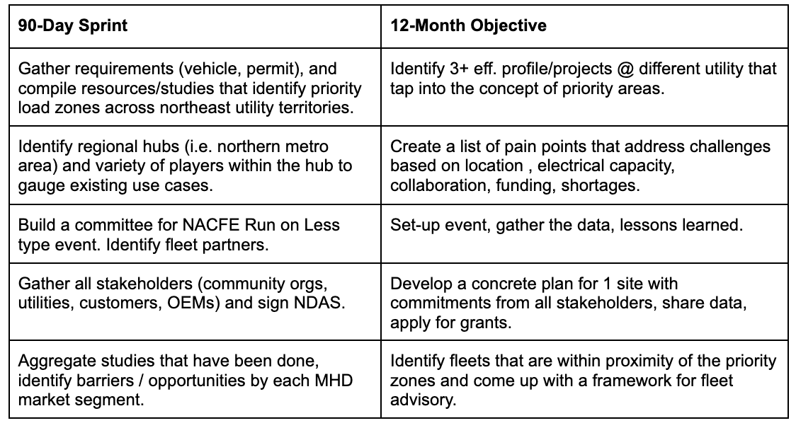 “Regarding regional fleet electrification, a critical obstacle to collectively overcome in 12 months is the lack of insights to most effectively scale NE MHD fleet electrification, starting in priority load zones that accounts for community EV infrastructure.”