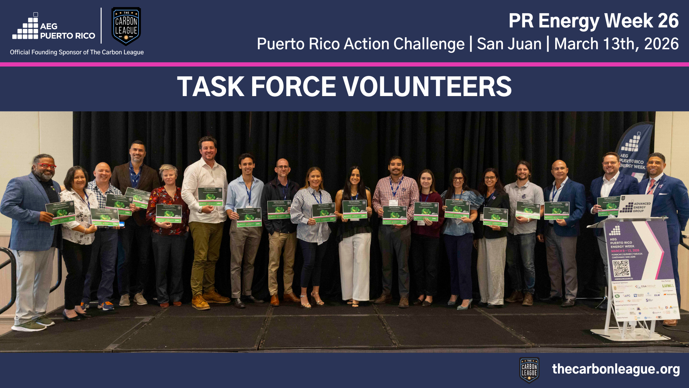 PREW26 Task Forces, Welcome to The Carbon League! The Carbon League is a 501c3 nonprofit that enables students and leaders within cities and vulnerable regions to achieve critical climate, health, energy, and prosperity goals. By providing technical assistance, programming, and leadership development, The Carbon League empowers students and executive leaders to deliver needed progress in 90-day sprints as volunteer teams. Learn more here.